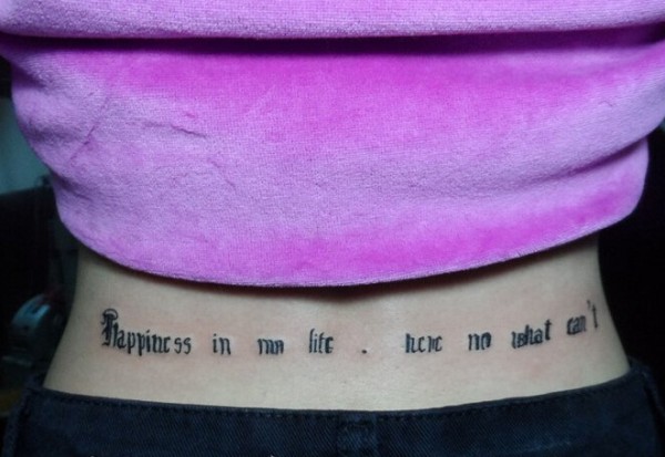 女生后腰纹身黑白灰风格抽象线条纹身图案