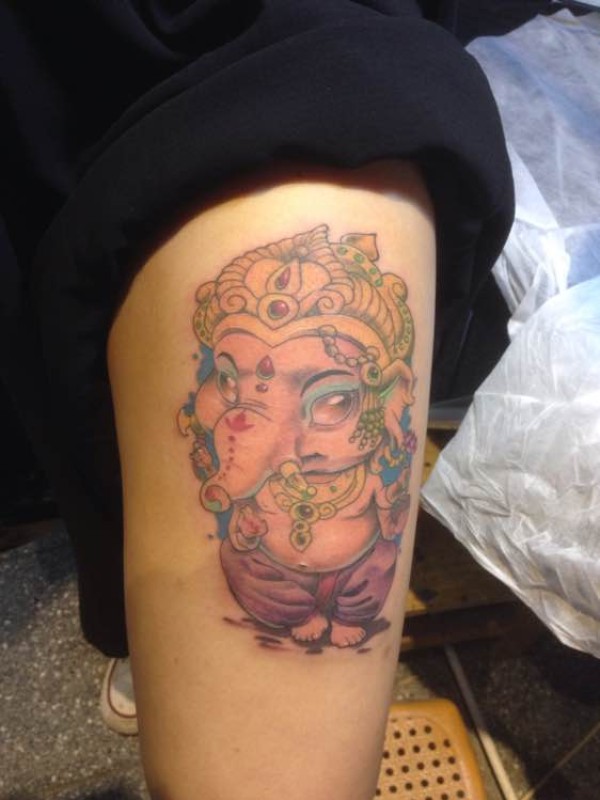 小腿上一款大象纹身图案_腿部纹身图案大全_纹身图吧