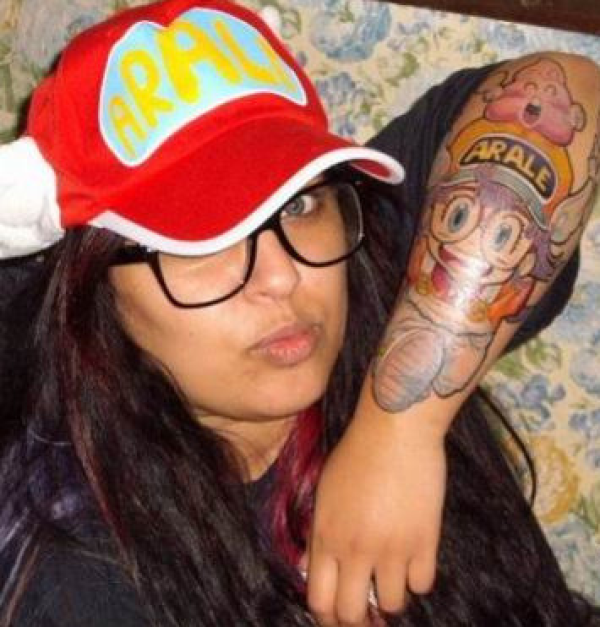 复古卡通红唇美女手臂纹身_卡通纹身图案大全_纹身图吧