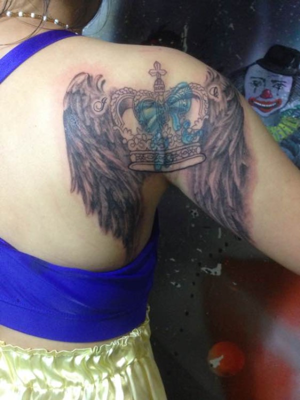 女生手臂漂亮的皇冠翅膀纹身