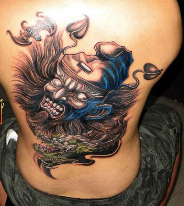 满背凶悍的钟馗头像纹身