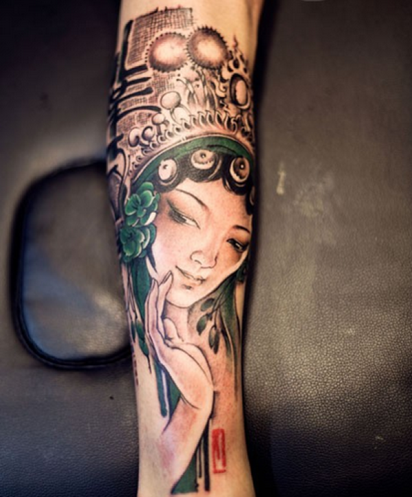 传统花腿纹身--18张传统风格的大花腿纹身图案作品