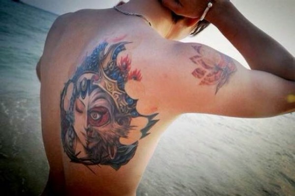 男生背部花旦和孙悟空纹身