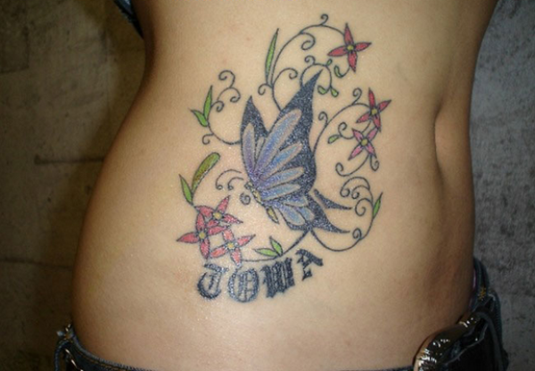 分享一款腰部时尚性感的蝶恋花纹身图案_腰部纹身图案大全_纹身图吧