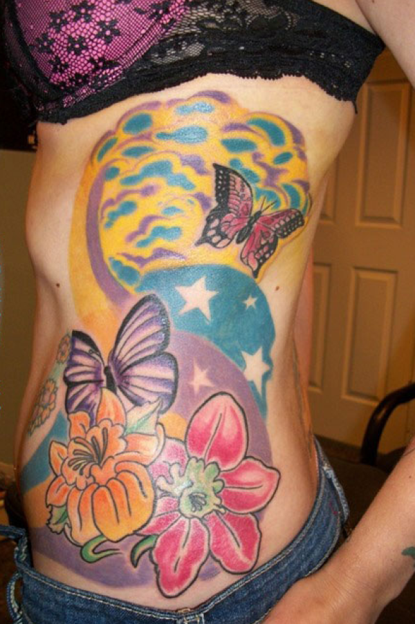 分享一款腰部时尚性感的蝶恋花纹身图案_腰部纹身图案大全_纹身图吧