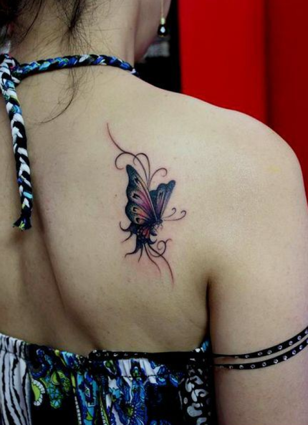 唯美好看的美女肩部蝴蝶纹身图案大全