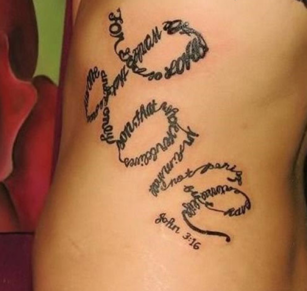 女孩腰上的Love造型的英文短句纹身
