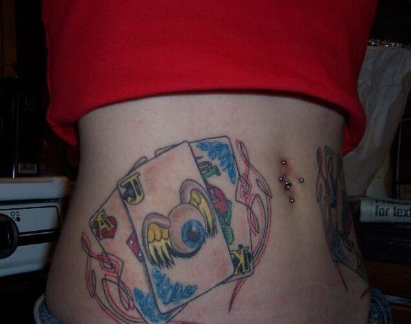 女生腹部古怪的扑克牌纹身