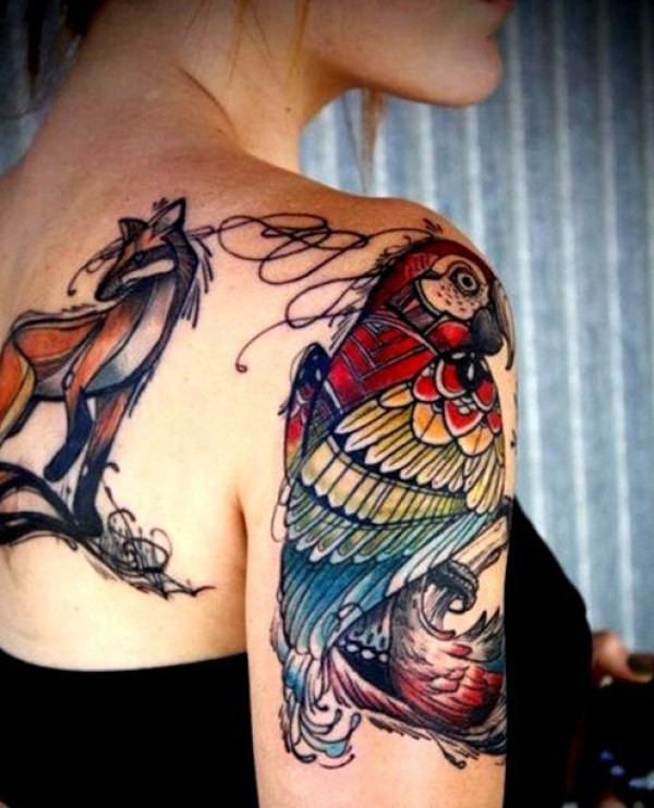 一组18张漂亮的欧美newschool动物纹身手稿图案
