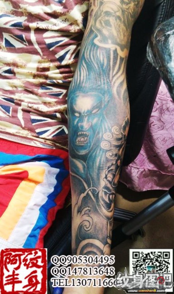 手臂黑灰象神_一组12张手臂上的黑灰象神纹身图案作品欣赏