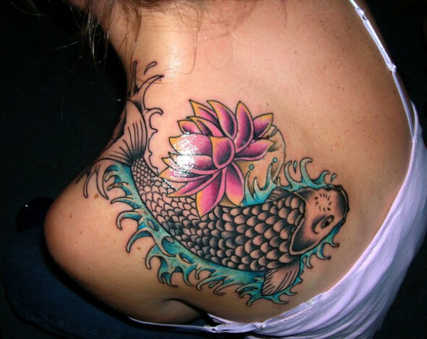 后背的锦鲤荷花纹身