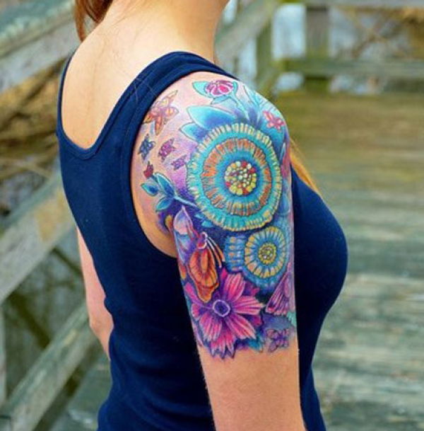 手臂一款彩色蘑菇纹身图案_臂部纹身图案大全_纹身图吧