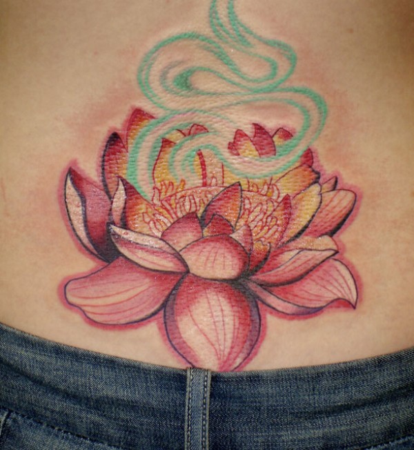 后腰红色莲花纹身图案