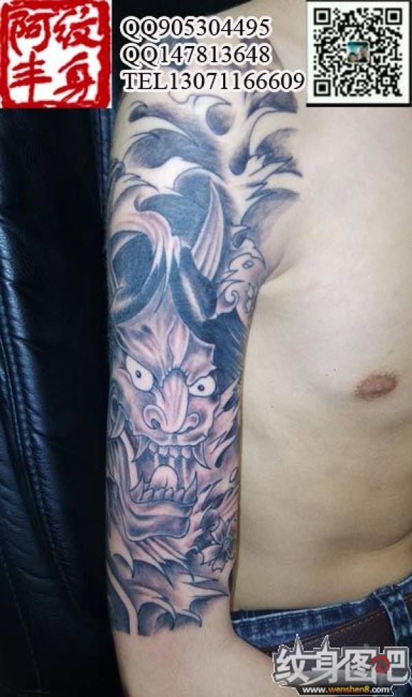 手臂黑灰象神_一组12张手臂上的黑灰象神纹身图案作品欣赏