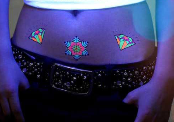 女孩腹部的荧光钻石纹身