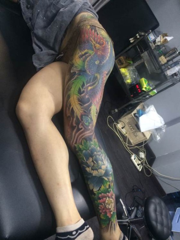 传统花腿纹身--18张传统风格的大花腿纹身图案作品