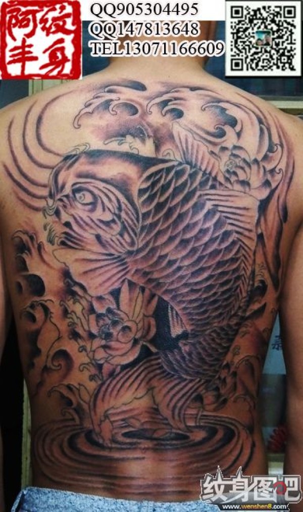 后背纹身 鱼纹身 黑白色纹身 阿丰纹身