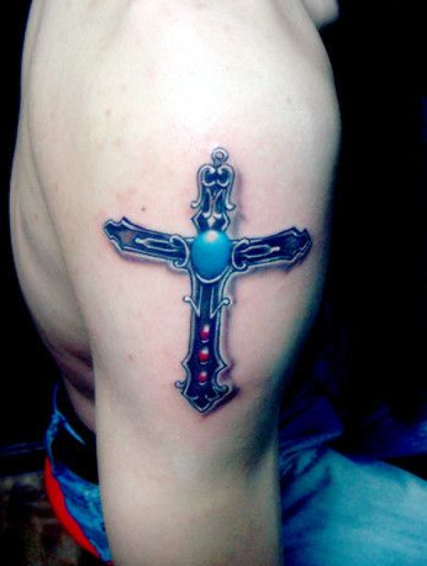 手臂3D十字架纹身图案
