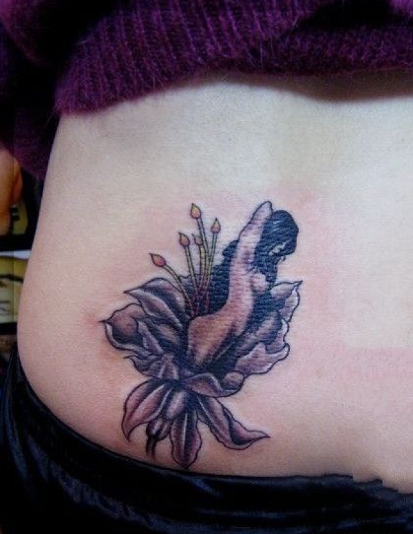 女性腰部莲花花纹刺青_腰部纹身图案大全_纹身图吧