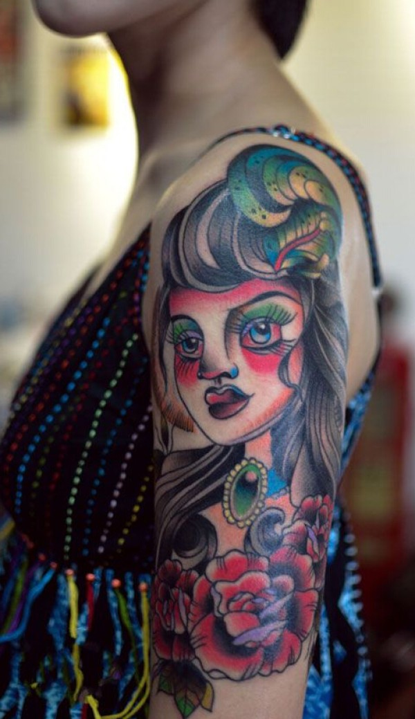 手臂莲花蛇纹身图案_臂部纹身图案大全_纹身图吧