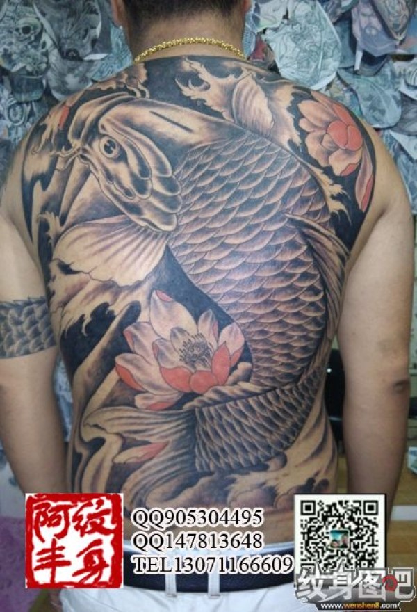 后背十斤大鱼纹身 后背纹身 阿丰纹身作品