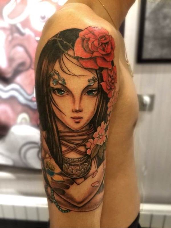 女性人物纹身图案 男生大臂纹身女性人物纹身图案