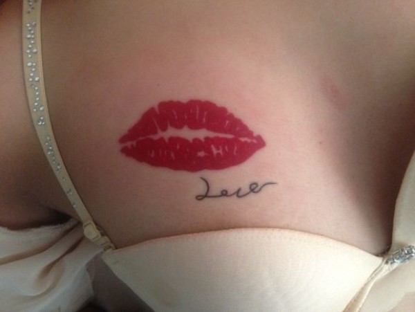 女生胸部性感红唇纹身图案