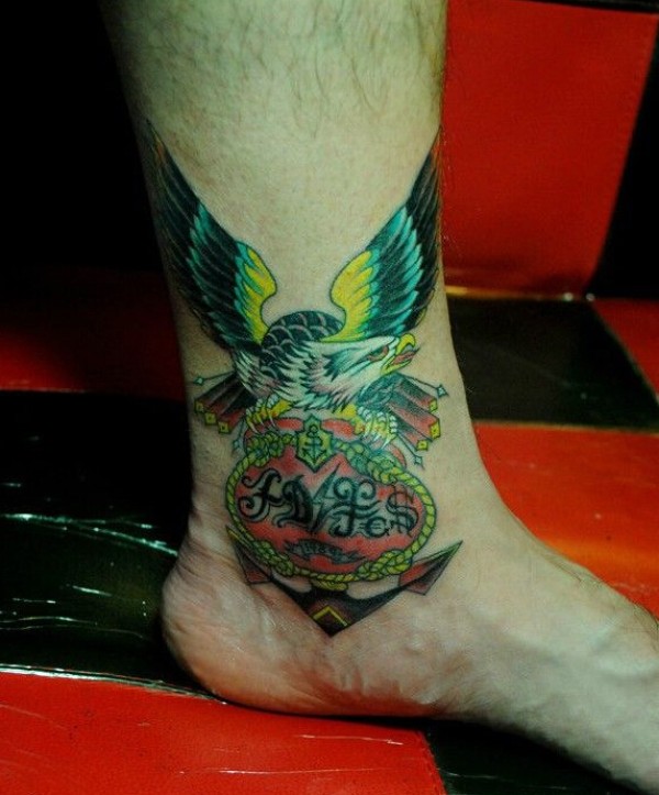 船锚上展翅的老鹰纹身图案