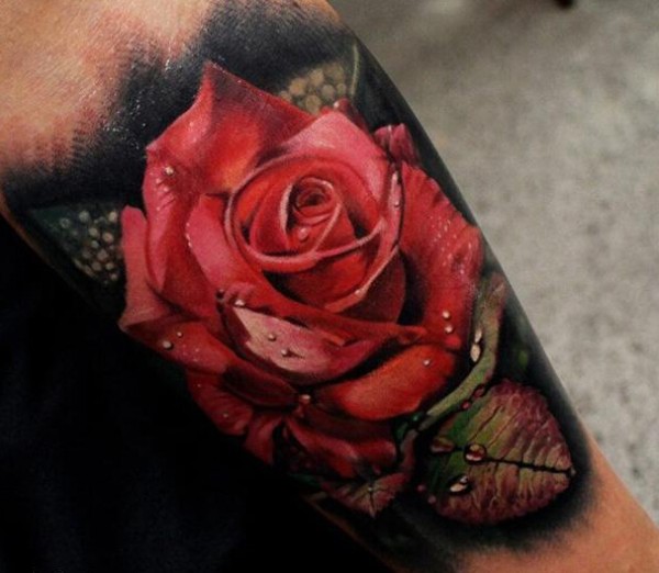 手臂漂亮逼真的3D玫瑰纹身