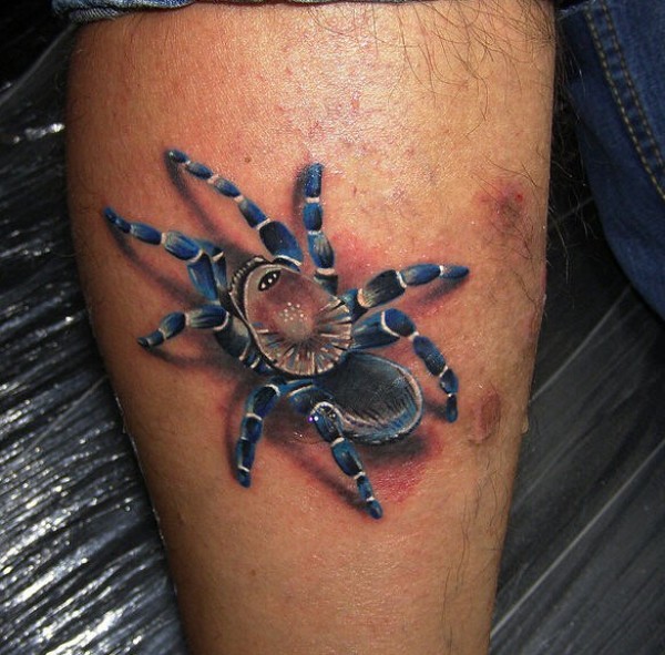 小腿3D蜘蛛纹身图案