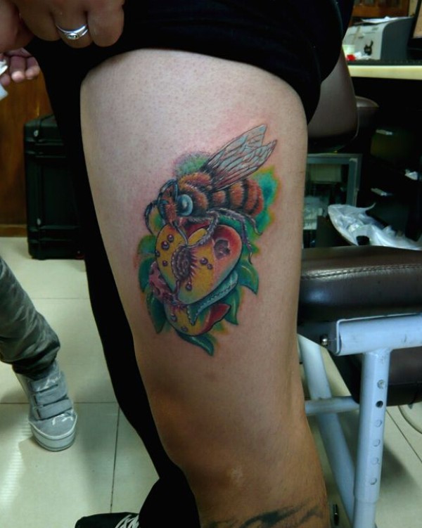 大腿可爱的蜜蜂纹身图案