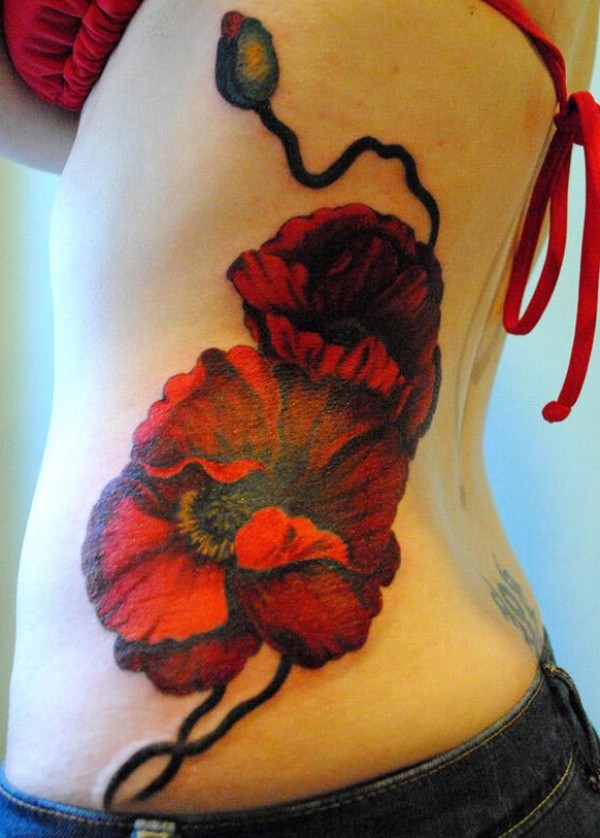 女性腰部莲花花纹刺青_腰部纹身图案大全_纹身图吧