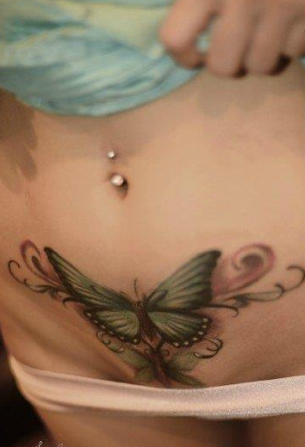 美女腹部唯美潮流的蝴蝶纹身图案