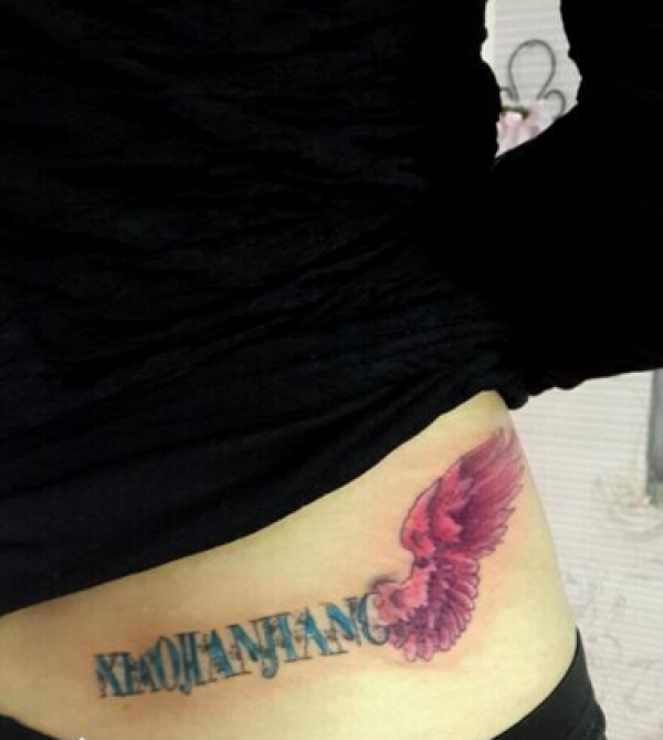 分享一款腰部时尚性感的蝶恋花纹身图案_腰部纹身图案大全_纹身图吧