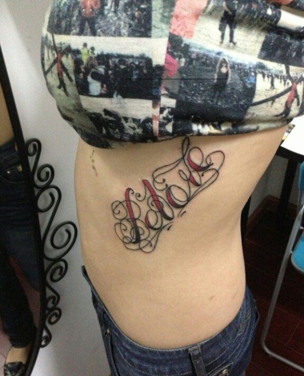 女生腰上好看的花体英文字纹身