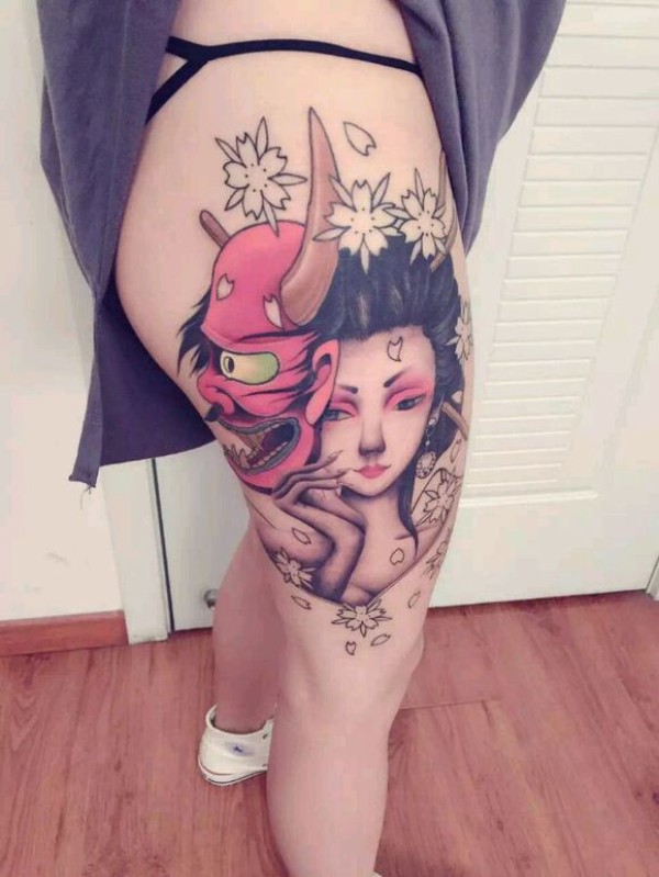 传统花腿纹身--18张传统风格的大花腿纹身图案作品