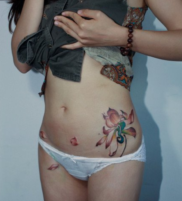 女性腰部莲花花纹刺青_腰部纹身图案大全_纹身图吧