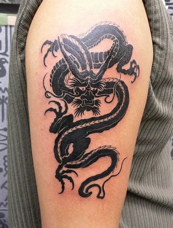 龙纹身手稿_一组老传统黑灰龙手稿纹身图案