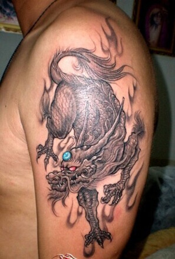 龙纹身手稿_一组老传统黑灰龙手稿纹身图案