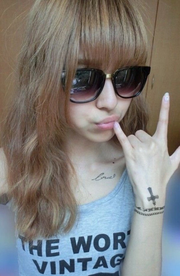 俏皮美女十字架手链纹身