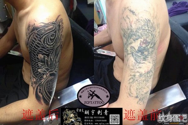 福建纹身-沙县针功夫胡宇纹身---失败纹身遮盖--鲤鱼纹身