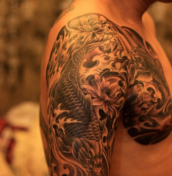半甲鲤鱼莲花纹身图片