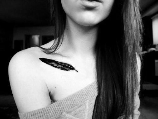 锁骨处漂亮唯美的羽毛纹身