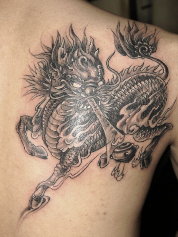 龙纹身手稿_一组老传统黑灰龙手稿纹身图案