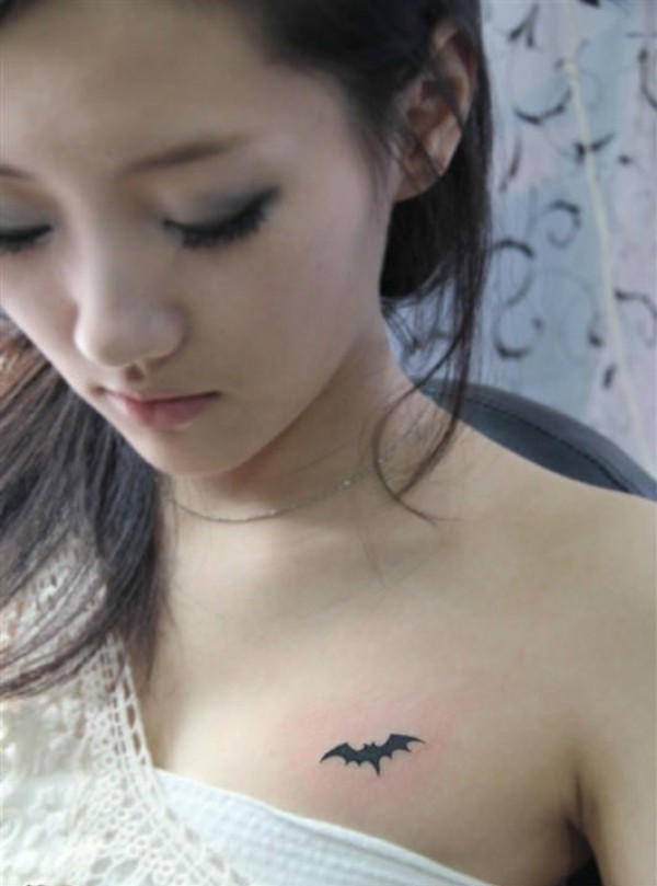 美女胸前个性蝙蝠纹身图案