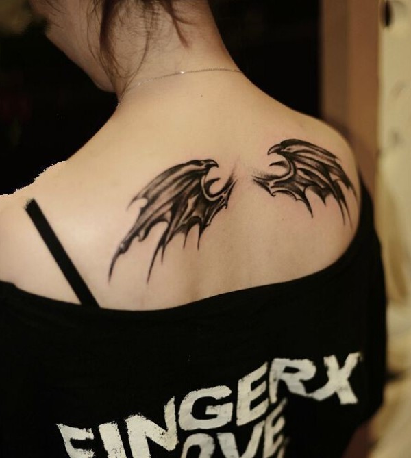 美女恶魔翅膀后背文身图案