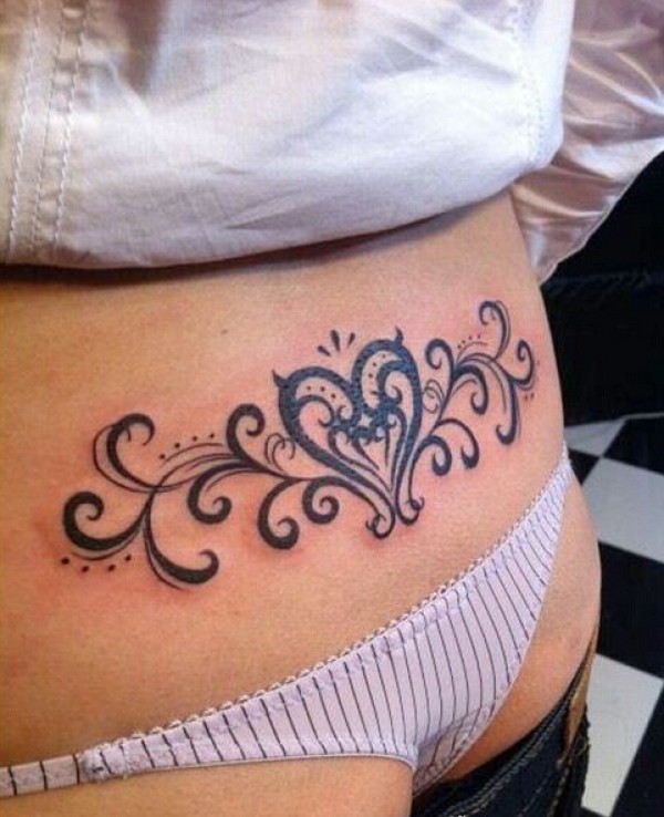 分享一款腰部时尚性感的蝶恋花纹身图案_腰部纹身图案大全_纹身图吧