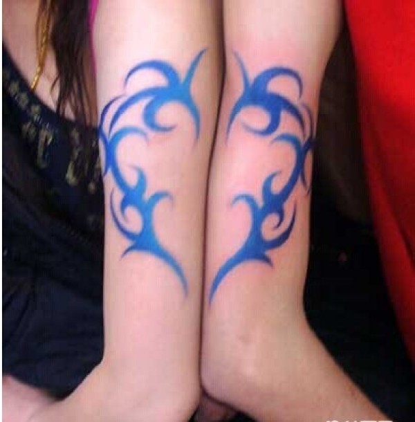 个性情侣肩部唯美漂亮的心型图腾纹身