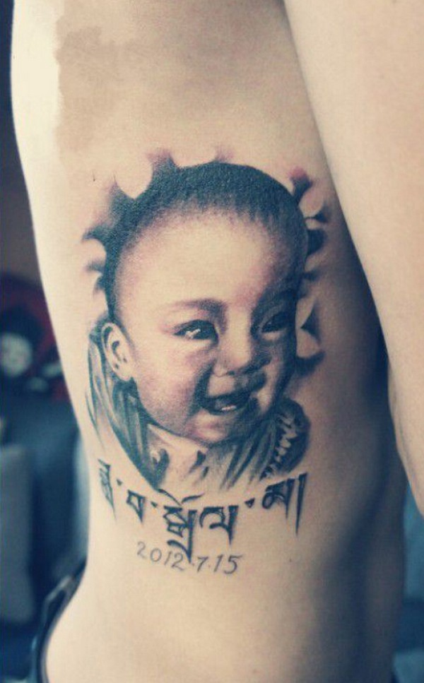 父母把孩子的照片和生日纹在了身上~