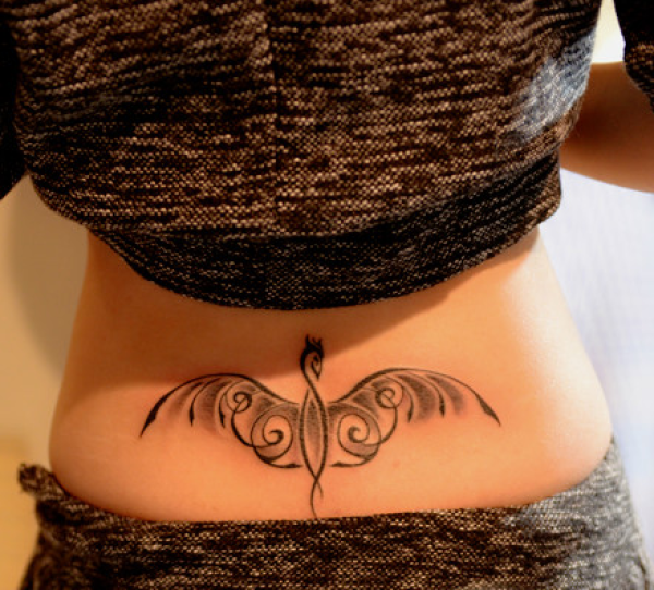 美女腰部黑色凤凰纹身图案